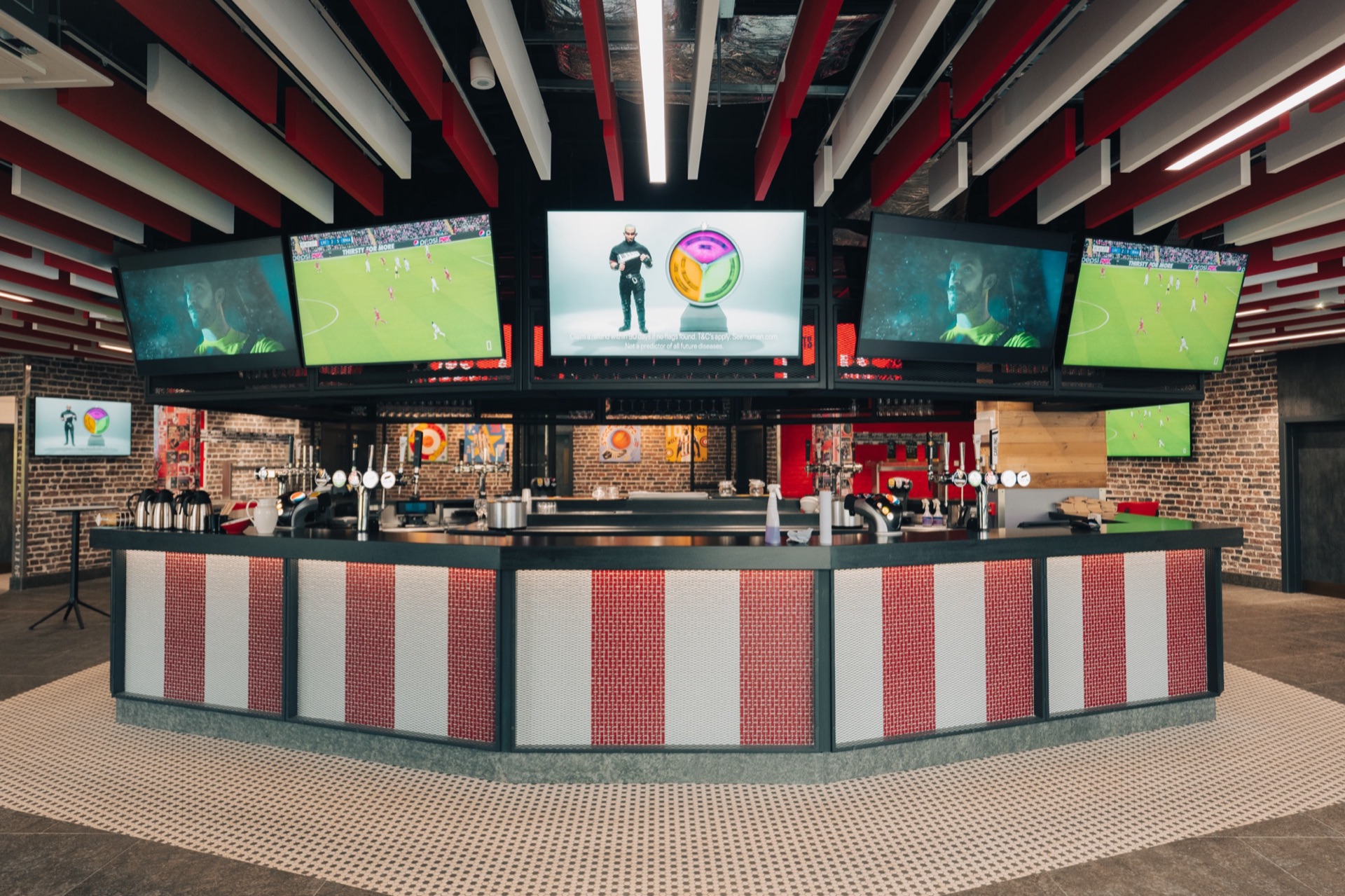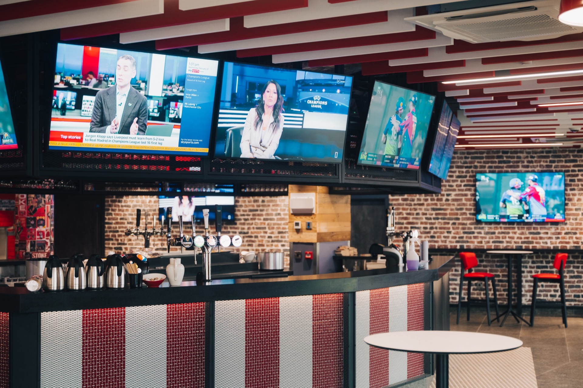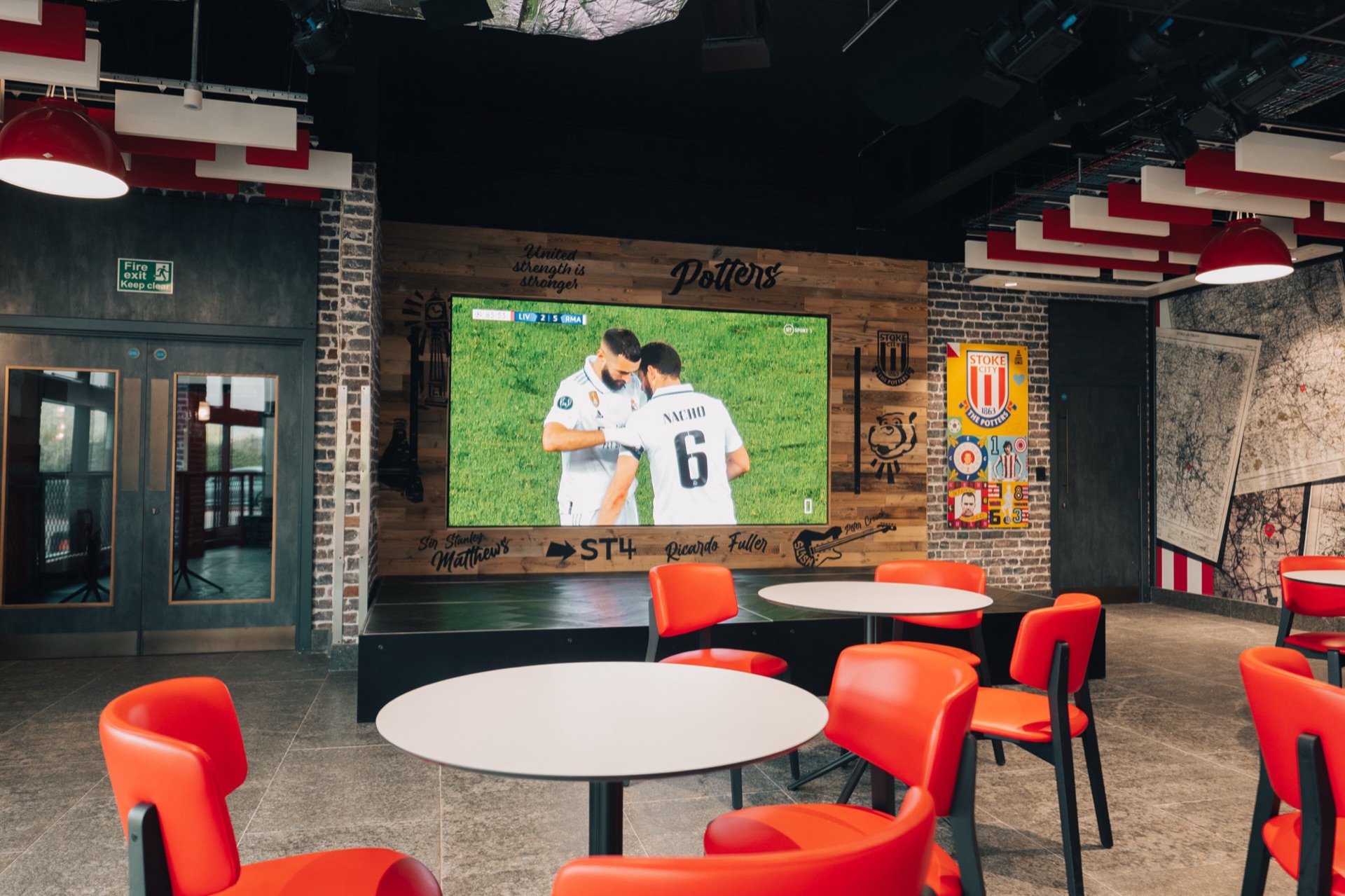 This level of flexibility was central to the brief. On a busy matchday, the system can display the main fixture across the majority of screens whilst simultaneously showing alternative fixtures, statistics, or promotional content on others. The result is a venue with no dead viewing space, where every seat in the house offers an engaging visual experience.